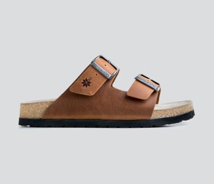 Pensamos y logramos un diseño popular, sencillo, accesible para mujer y varón, con la comodidad de una base de corcho forrada con natural cork, fondo de eva y hebillas adaptables para cada pie.